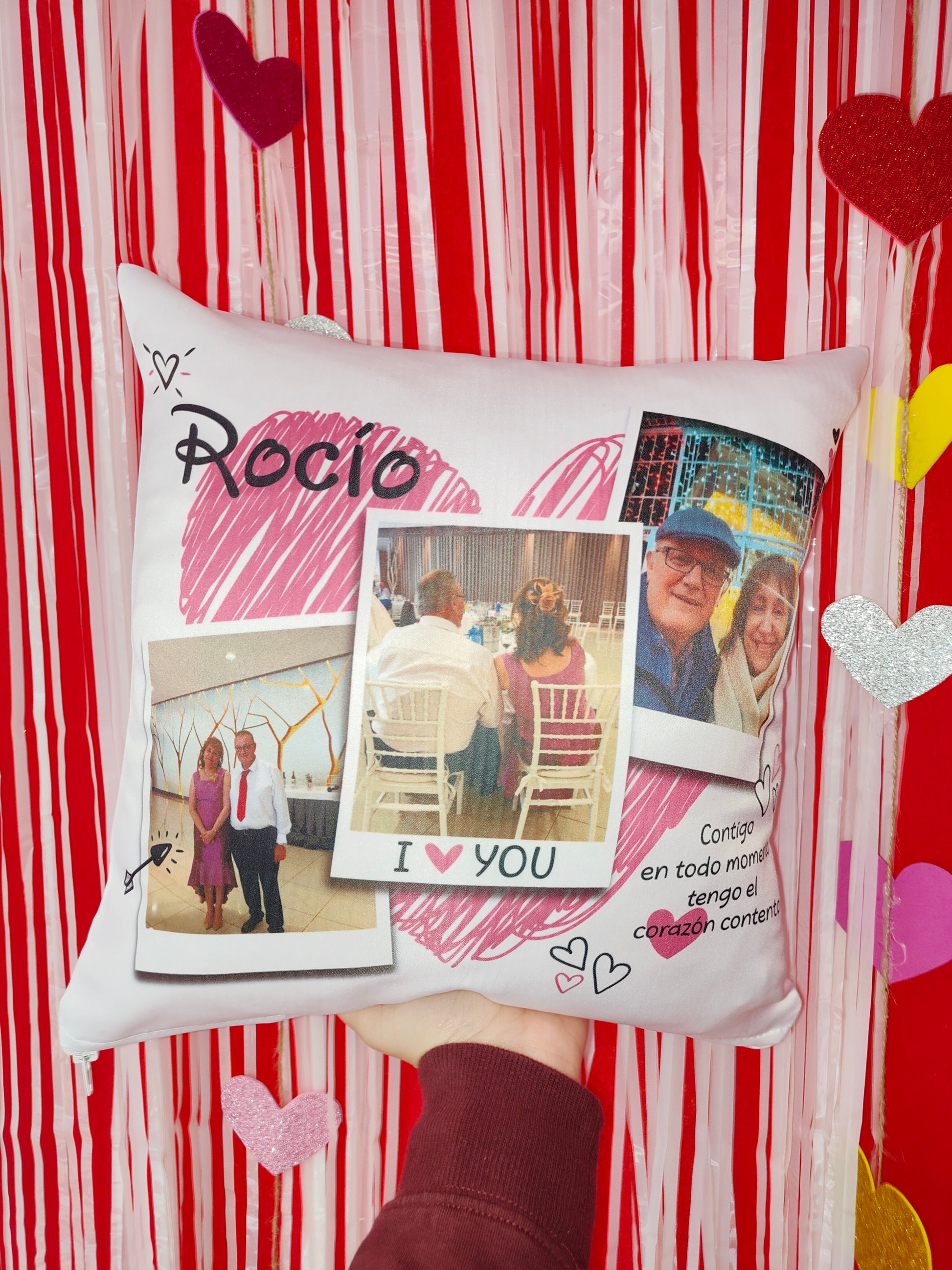 Cojín personalizado con ilustración, frase o nombre. Ideal como regalo decorativo para casa o eventos especiales.